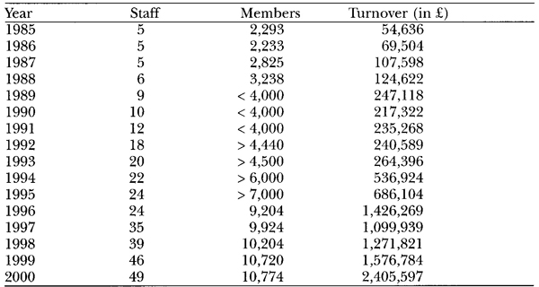 Growth of a county wildlife trust: Wiltshire Wildlife Trust 1985-2000