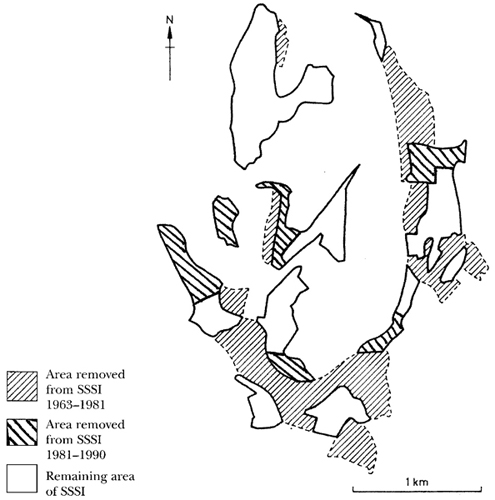 The Nature Conservancy and its successors evolved methodologies for grading semi-natural land according to its value for wildlife. These were based on attributes such as size (generally the bigger the better), diversity and ‘naturalness’ – based that is, on the quality of the habitat rather than on rare species in isolation. The original idea had been to preserve all the very best examples of woods, heaths, chalk downs and so on as nature reserves. However, that was never going to be enough, so an alternative to direct ownership (or at least proxy management) was needed. From 1949, the Nature Conservancy was allowed to ‘schedule’ any area of land of special interest ‘by reason of its flora and fauna, or geological or physiographical features’. These were (and are) called SSSIs or Sites of Special Scientific Interest. This clumsy term has caused much head-scratching. Here ‘Scientific’ really means ‘nature conservation’ in an adjectival sense. Every now and then someone suggests changing the name, but nothing has ever come of it for fear of adding to the confusion. In any case, until 1981, SSSIs did not amount to very much. The job of the Conservancy was to identify SSSIs, say why they were important and notify them to the local planning authority. In the case of a development requiring planning permission, the local authority would then decide whether to allow the development or refuse it. Of course the local authorities had their own plans and guidelines that were broadly in favour of SSSIs – but ‘the national interest’ always came first, and this could be interpreted in all sorts of ways. Moreover, the most common threats to SSSIs – agricultural improvement or tree planting – did not normally require planning permission. Altogether the Conservancy had been given a very poor hand. It could offer only pennies in compensation, while the ‘improvers’, by way of the Ministry of Agriculture and the Forestry Commission, could offer pounds.