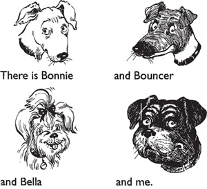 Me, I’m just a mongrel. Some people say that mongrels are the best. Naturally, I agree with them! But Bella was always very proud of being a pedigree. She admits, now, that she was rather boastful. She used to tell all the dogs she met, “I’m a pedigree.” Of course, some of them were pedigrees, too, but they didn’t go round boasting about it.