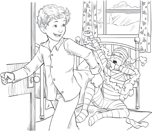 “Ow!” Isis cried. With her arms folded over her chest, mummified Princess Isis Amun-Ra sat up stiffly. “That’s not a nice way to be woken up!” she said. There was a creak as she stretched her arms. A cloud of dust swirled round her.