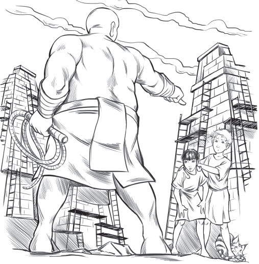 The foreman frowned at Tom and Isis. “It’s your lucky day – I don’t have time to give you a beating. Get over to the old temple wall and help chisel off the picture of Aten!” He pointed at a stone building in the distance.