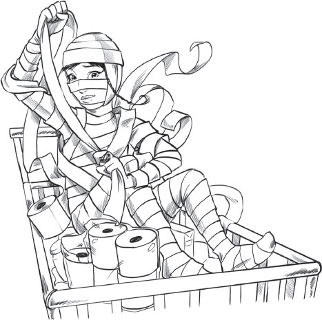 Tom grabbed the trolley’s handle. But just as he was about to stop next to the tomatoes and peppers, Isis shouted. “Come on, Cleo! Let’s ride the chariot!”