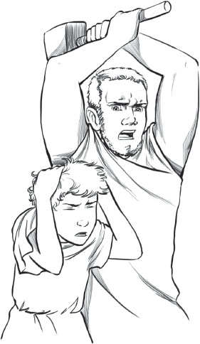 “See those plumed helmets?” Tom said. “I’ve seen those in Dad’s museum. They’re Ancient Greek army helmets. And that upside-down V was the symbol of the Spartan army.” He peered up at the pale stone walls. “Those look like the walls to some ancient city. But the Greeks are on the outside, so—”