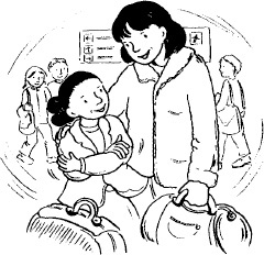 Aunt Nancy and her fiancé Leo were waiting for them in the arrivals hall. Mr Tang spotted his sister first.