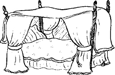 The wind blew around the ancient tower and rain lashed against the casement windows, but inside the castle all was bright and warm. Log fires crackled in huge open fireplaces and the great hall was prettily lit with sparkling candelabra. Morag and her family were shown to their tower rooms, and were delighted to find they would be sleeping in big four-poster beds hung with old velvet curtains.