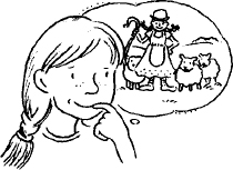 Mum’s sister Fiona was getting married and Mum was giving her away. The wedding was going to be in Dunnock Castle which had been restored in Victorian times by a rich businessman and Fiona decided that she wanted a Victorian theme for her wedding. She was going to wear a crinoline and a lacy Victorian veil and she wanted Morag in a ‘Little Bo Peep’ outfit, with a Victorian bonnet on her head and a basket of flowers in her hand.