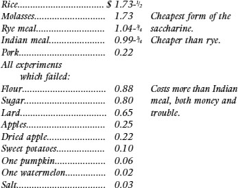 Every New Englander might easily raise all his own breadstuffs in this land of rye and Indian corn, and not depend on distant and fluctuating markets for them. Yet so far are we from simplicity and independence that, in Concord, fresh and sweet meal is rarely sold in the shops, and hominy and corn in a still coarser form are hardly used by any. For the most part the farmer gives to his cattle and hogs the grain of his own producing, and buys flour, which is at least no more wholesome, at a greater cost, at the store. I saw that I could easily raise my bushel or two of rye and Indian corn, for the former will grow on the poorest land, and the latter does not require the best, and grind them in a hand-mill, and so do without rice and pork; and if I must have some concentrated sweet, I found by experiment that I could make a very good molasses either of pumpkins or beets, and I knew that I needed only to set out a few maples to obtain it more easily still, and while these were growing I could use various substitutes beside those which I have named. “For,” as the Forefathers sang,—