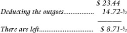 which subtracted from the sum of the outgoes leaves a balance of $25.21-3⁄4 on the one side – this being very nearly the means with which I started, and the measure of expenses to be incurred – and on the other, beside the leisure and independence and health thus secured, a comfortable house for me as long as I choose to occupy it.