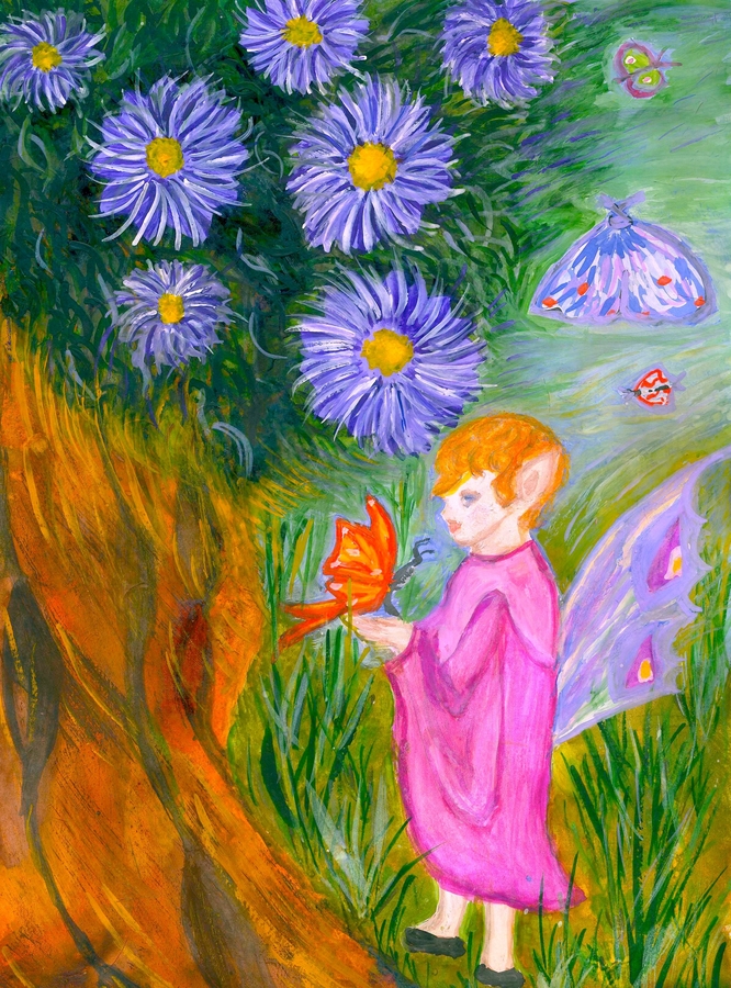 … Когда друзья подошли на ромашковую полянку, девочки-эльфы уже исполняли вальс луговых цветов, они прыгали с цветка на цветок, крутили разнообразные по сложности пируэты прямо в сердцевинах ромашек, поднимая своими движениями целые вихри жёлтой пыльцы. Наш эльф сразу нашёл среди них Элинику и теперь с особой нежностью наблюдал, как та совершает замысловатое па, периодически приподнимаясь на носочки и грациозно поворачиваясь при этом на своих стройных ножках.
