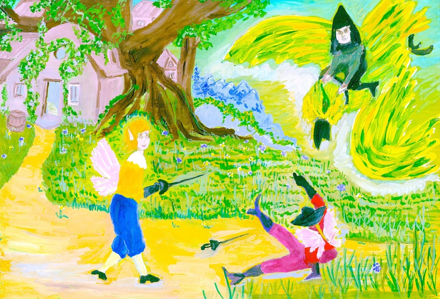– Шпаги к бою!– обьявил эльф-помощник, и фехтовальщики стали друг напротив друга в исходную позицию с вытянутым вперёд оружием.