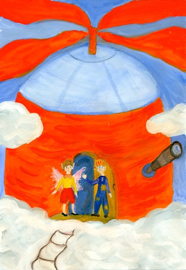На бескрайнем розовом облаке располагалось городское поселение, напоминающее многослойный пирог. Оно состояло из множества близко стоявших, налезающих друг на друга, жилых домиков. Крыши хижин были не вверху, а внизу, то есть, такая себе «с ног на голову многоэтажка», где виллекуляндцы жили все вместе, как одна большая семья.