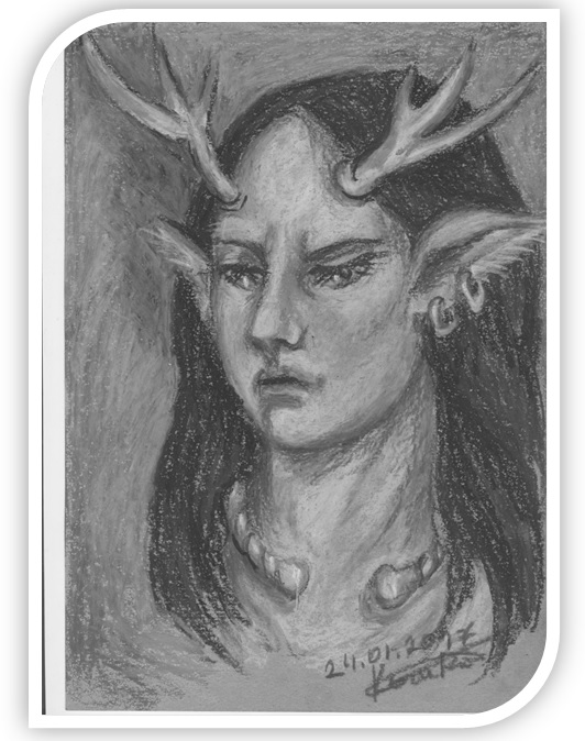 Фусис приходил на землю чёрным оленем, или юношей с оленьими рогами. Вот и теперь по берегу реки Лудий, шёл в образе человека, в котором слабо угадывался сатир. Только рога позолотой блестели в тени деревьев и чуткие развесистые уши, которые так и не удавалось спрятать под копной иссиня-чёрных волос. Его длинные лёгкие волосы развивались ветром как тонкую дымку от погребального костра. Юное, даже можно сказать, детское лицо духа, было не довольно. Его подвижный нос дёргался из стороны в сторону, пытаясь почувствовать скрывающийся в земле запах смерти. Печальные огромные голубые глаза были прикрыты пушистыми ресницами. Дудочник не любил солнечного света. Губы небольшого рта презрительно подрагивали. Он искал то, что вызовет отклик в его душе, в душе извращённого Смертью духа природы, когда-то прошедшего через иной мир и возродившегося уже таким, наслаждающимся красотой смерти, её последним мгновением.