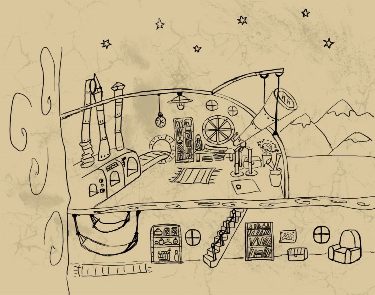 На самом высоком дереве была расположена обсерватория звездочёта Альберта и его внука Фили. Внешняя её часть имела полукруглую крышу большого размера со специальным отверстием, куда выдвигалась гигантская зрительная труба для наблюдения за звёздами, а рядом торчало множество дымоходов. Внутренняя часть обсерватории была расположена в стволе дерева – там была спальня с двумя гамаками, хорошая кладовая и библиотека с кабинетом Альберта.