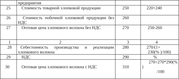 2) вычитание стоимости побочной хлопковой продукции не от покупной стоимости хлопка-сырца, а от стоимости товарной хлопковой продукции, дающее возможность рентабельности всех видов хлопковой продукции;