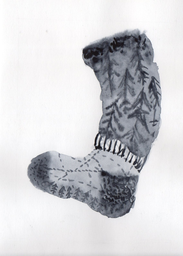 «Мы все чего-то ищем, не правда ли?» – проговорил старик обращаясь к Маленьким Штанишкам. Тот замер и смотрел на старика – «Наверное так». «И часто так и не находим» – улыбнулся старик. Маленькие Штанишки потянулся к старику, который сжимал в руке искомый носок – «Потому что не там ищем?». «Нет» – сказал старик поднимая руку с носком – «потому что мы ищем совсем не то» и швырнул носок в пламя огня.