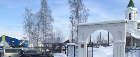 Фото. Колонна автомобилей у Храма Преображения господня в пгт. Игрим