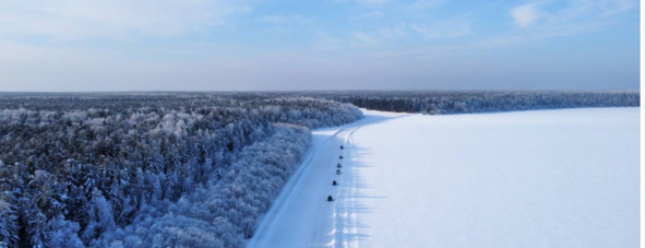 Фото. Колонна путешественников на зимнике в направлении Саранпауля из Нягани.