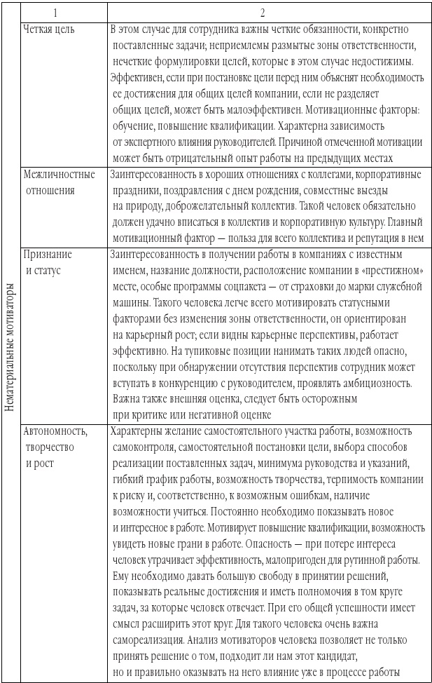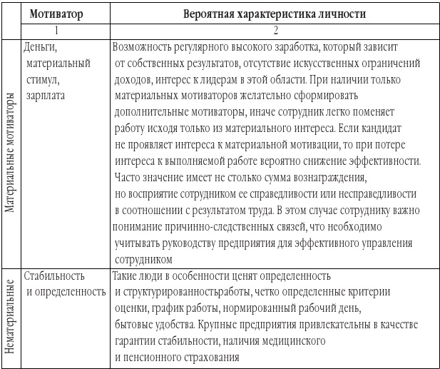 Существует много классификаций мотиваторов, но здесь мы приведем наиболее удобную в целях оценки кандидата (таблица 1.4).