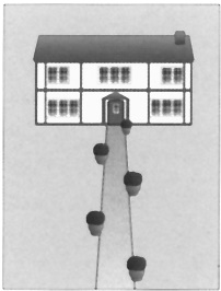 Несмотря на то, что прямое направление дорожки не было изменено, по сторонам ее установлены кадки с растениями, которые замедляют движение ци, снижая воздействие негативной энергии. Следует помнить о том, что кадки или горшки с растениями или цветами воздействуют на потоки ци так же активно, как и растения, посаженные непосредственно в почву (рис. 3 в).
