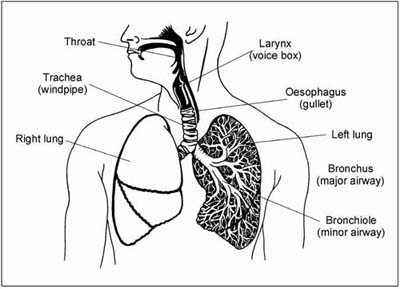 Before you commence breathing retraining, it is important for you to have a basic understanding of the roles played by the respiratory system and carbon dioxide in your body. Your respiratory system consists of the parts of your body used for the delivery of oxygen from the atmosphere to your cells and tissues, and for transporting the carbon dioxide produced in your tissues back into the atmosphere. If cells and tissues are to function properly – if you are to live – your body needs the atmosphere’s oxygen. Your nose, mouth, pharynx, larynx, trachea, bronchi and lungs are all part of your respiratory system.