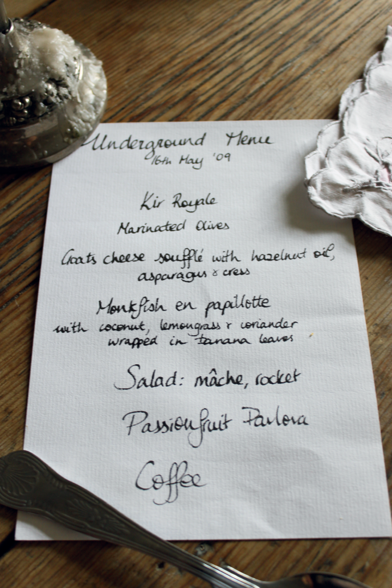 It’s also a good idea to do some research. Go and visit other supper clubs. Read up on them if you are too far away to visit. Volunteer to help out for a night or two. I get e-mails all the time asking to work. Lady Grey of the Hidden Tea Room in London offered to take me to lunch to pick my brains. Feeding a cook is a perfect method of extracting information. You will soon work out what tricks and techniques you want to retain and which do not suit you. When I started, there were no others to check out. Now there are…so use them!