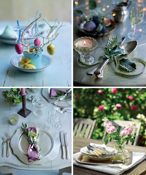 * At Easter, you can try a similar trick-from small branches hang painted eggs. You can also spray the branches silver or gold. You could even do a mini version with quail’s eggs! Place mini pastel-coloured Easter eggs or little chicks around the table.
