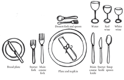 Not everyone has an extensive range of cutlery to set a formal place setting, so don’t panic about doing this ‘properly’. But I often do get asked, ‘Where should the water glass go?’ or ‘Where should I put a side plate?’, so if you want to set a fancy table, here is the general thinking on how your place setting should look: