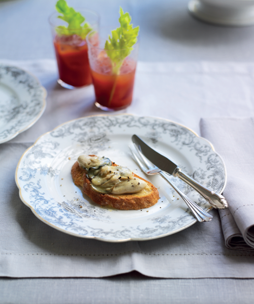 5 Just before serving, add the lemon juice and taste — it probably won’t need any salt. Place the oysters on the buttered toast, pour over the juices, add a grinding of black pepper and serve.