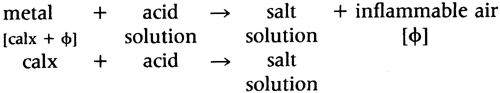 The principal reason why Lavoisier was unable to suggest in 1777 that chemists would be better off by abandoning the theory of phlogiston was that only this theory could explain why an inflammable air (in fact hydrogen) was evolved when a metal was treated with an acid, but no air was evolved when the basic oxide of the same metal was used. If the metal contained phlogiston, the explanation, as Cavendish suggested, was simple: