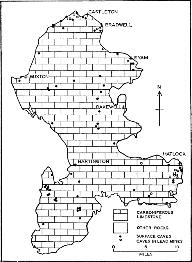 Fig. 6. Distribution of the principal caves in the Peak District. (Based on G. T. Warwick)