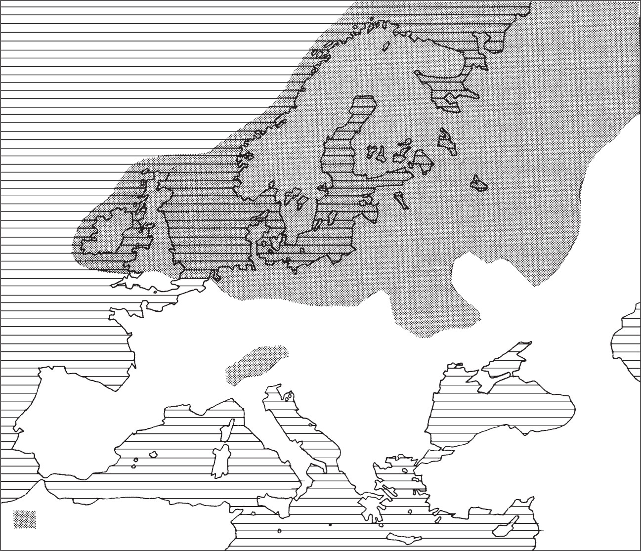 The Pleistocene epoch was comparatively short; it has been deeply studied using modern techniques during the last fifty years so that our knowledge of it increases every day. It was formerly thought to have lasted about a million years, but is now known to have been probably twice as long – some authorities consider it to have lasted as much as three million years. It is popularly called the ‘Ice Age’, a name that over-simplifies the matter, for the ice ebbed and flowed so that mild periods of sometimes almost tropical warmth, separated successive glaciations. At its height ice sheets covered most of Europe, North America and northern Asia, while another covered Antarctica, as it still does.