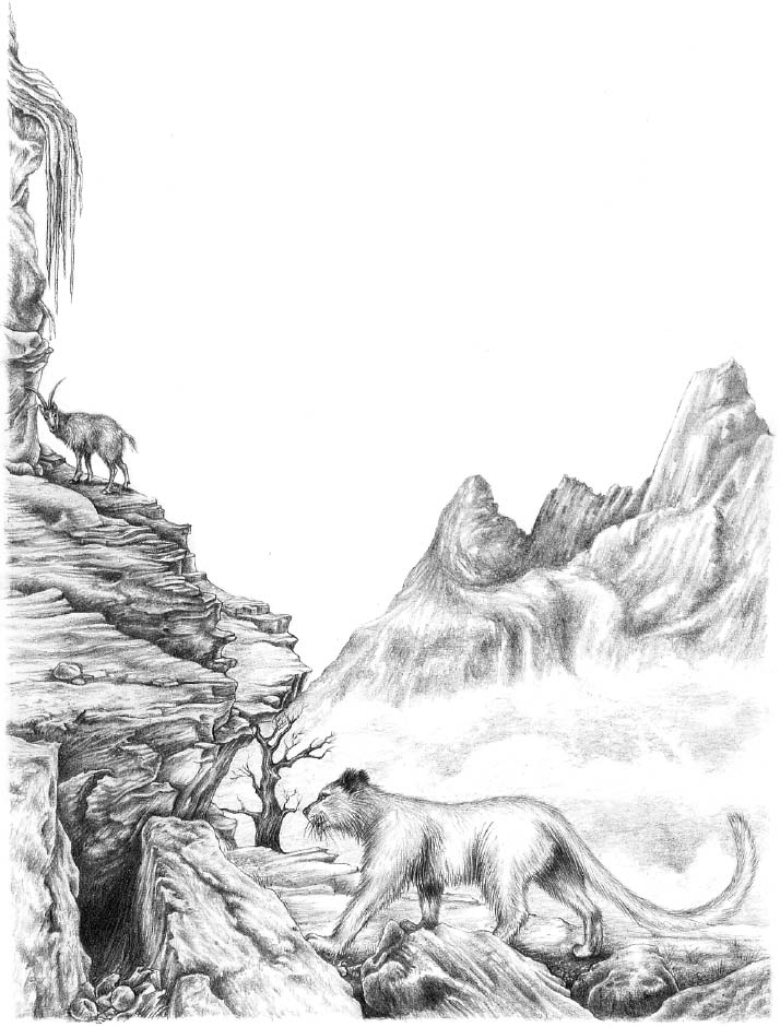 On reaching that part of the mountain where the snow always lay I killed an ibex, which my master skinned and cut up, putting the very best pieces into his knapsack and giving me the rest. Then we went still higher up, and I noticed my master was breathing with difficulty. So we stopped, and after looking all round at the vast extent of land below us, we began to descend. I stayed behind, finishing the last pieces of the ibex, and after a few minutes my master turned and called me.