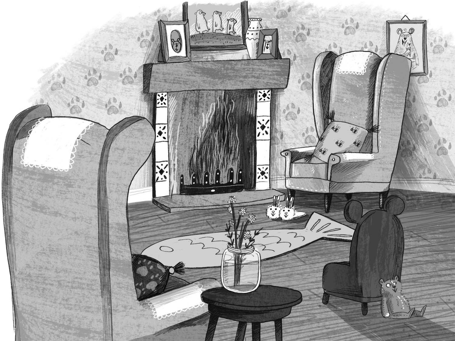 She turned on a lamp to get a better look at the place, which appeared to be empty. In the living room there was a fireplace and in front of it was one big chair, one medium-sized chair and one little chair. Walking into the kitchen, she saw a large wooden table. Placed round it was one big chair, one medium-sized chair and one little chair.