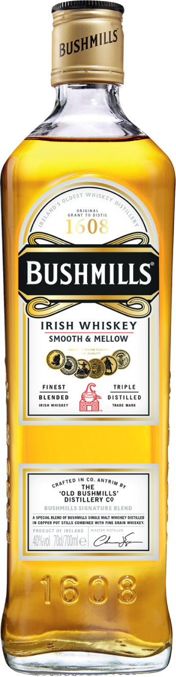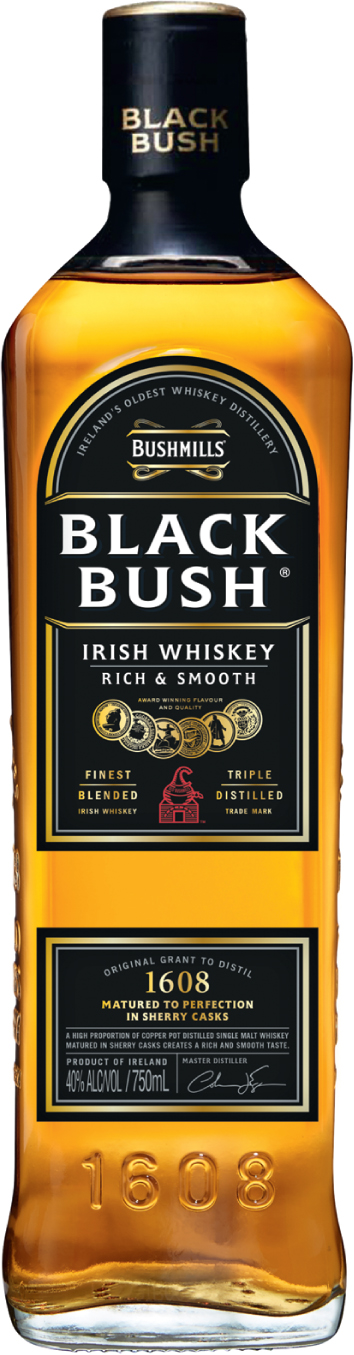 Fans of Black Bush are wholly committed to their love of this great malt and grain blend. Known by some in Ireland as “Bushmills Liquor”, ordering a glass of Black Bush in a bar brings with it a hint of class that is often lacking in the identity of other Irish whiskeys. It gets its attractive dark colour from maturing in sherry casks and has a wonderful smoothness that underpins its rich, deep flavour. The blend is majority malt whiskey, aged up to 18 years. Bottled at 40 per cent.