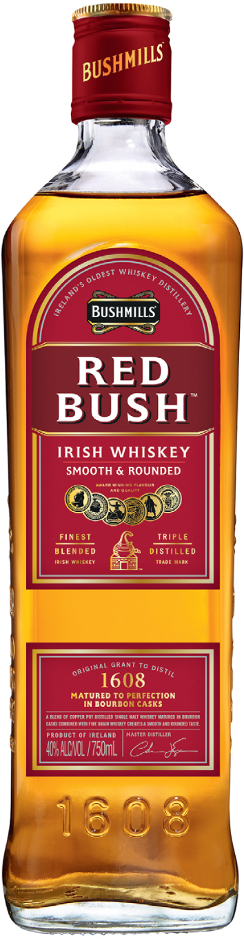 Red Bush is a recent arrival at Bushmills, having been introduced as recently as 2017. Originally aimed at the US market, it’s a blend of four-year-old grain whiskey matured in first-fill bourbon casks to capture a stronger bourbon feel. It has a similar vanilla, fruit flavour to the Original, but with a sweeter finish which lingers and dominates this new entry-level whiskey. It has a darker red colour, to match its title identity. Bottled at 40 per cent.