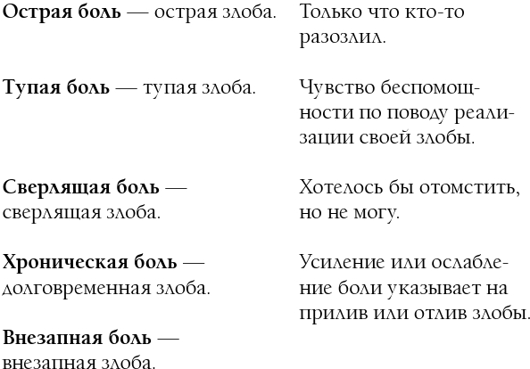 Покраснение указывает на то, как злоба концентрируется для выхода. Для вмещения злобы расширяются кровеносные сосуды. Тело знает, что злобу нужно выпустить на свободу. Мы видим внешнее покраснение, но подобное воспаление наблюдается всюду, где злоба скапливается до тех пор, пока не лопнет какой-либо кровеносный сосуд.