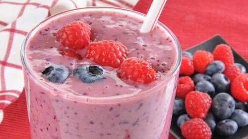 Batido de tofu de seda con nueces y bayas