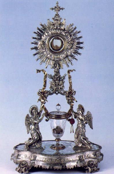 dell’Ostensorio, con la carne, e ampolla, col sangue raggrumato, nel Santuario di Lanciano:
