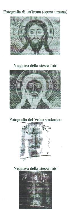 Per rendere evidente quanto sopra, mettiamo a confronto una foto, positiva e negativa, d’un'opera d'arte bizantina (un'icona dipinta) e, immediatamente sotto, una foto, positiva e negativa, del Volto dell'Uomo sindonico: