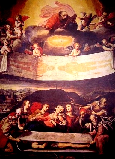 "C'era un uomo di nome Giuseppe, membro del Sinedrio, persona buona e giusta. Non aveva aderito alla decisione e all'operato degli altri. Egli era di Arimatea, una città dei Giudei, e aspettava il regno di Dio. Si presentò a Pilato e chiese il corpo di Gesú. Lo calò dalla croce, lo avvolse in un lenzuolo e lo depose in una tomba scavata nella roccia, nella quale nessuno era stato ancora deposto. Era il giorno della parascève e già splendevano le luci del sabato (Luca, 23, 50 - 54).