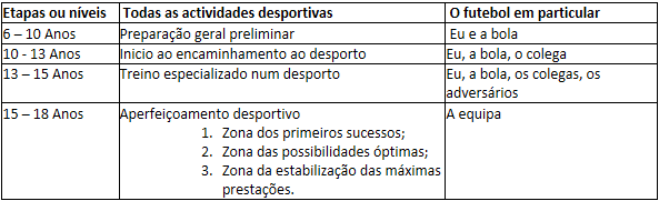 Antes de enumerar as várias fases da preparação desportiva é necessário recordar que as idades cronológicas indicadas são puramente esquemáticas, na preparação juvenil é muito mais serio e correcto considerar as idades biológicas dos vários indivíduos.