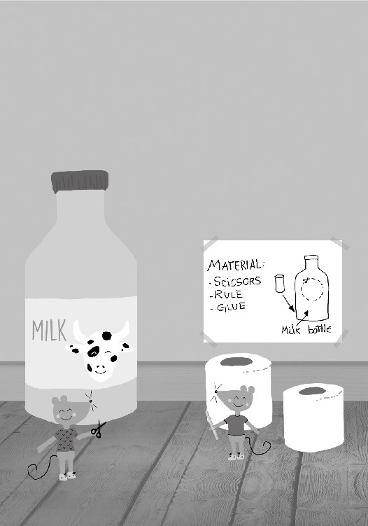 Making a spaceship is easier than it sounds if you use your imagination. Alex and Alvaro took an empty plastic milk bottle to build the ship and used two rolls of toilet paper for the engines. Since they had to enter the ship, they made a large door so that any mouse could fit through it, no matter how fat he might be. They also decided to make a window, so they could watch their surroundings as they flew.