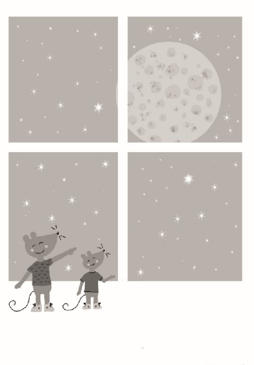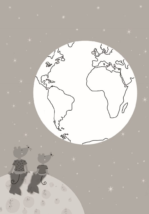 De volta à Terra, organizaram uma festa de queijo lunar. Elena e Javier, os pais, fizeram um grande cartaz com os nomes dos ratinhos. Vieram todos os ratos da casa e mais alguns das casas vizinhas. Todos, inclusive os primos: Pilar, Gui, Gonçalo e David, estavam loucos para experimentar um pedaço da Lua, e ansiosos para ouvir as aventuras de Alex e Álvaro para consegui-lo.