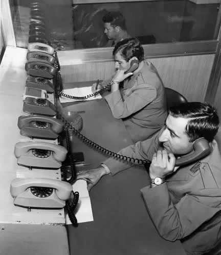 Antigua centralita y sala de operaciones de la Comisaría, en los años 50-60 del siglo XX. Archivo fotográfico de la Policía del Estado