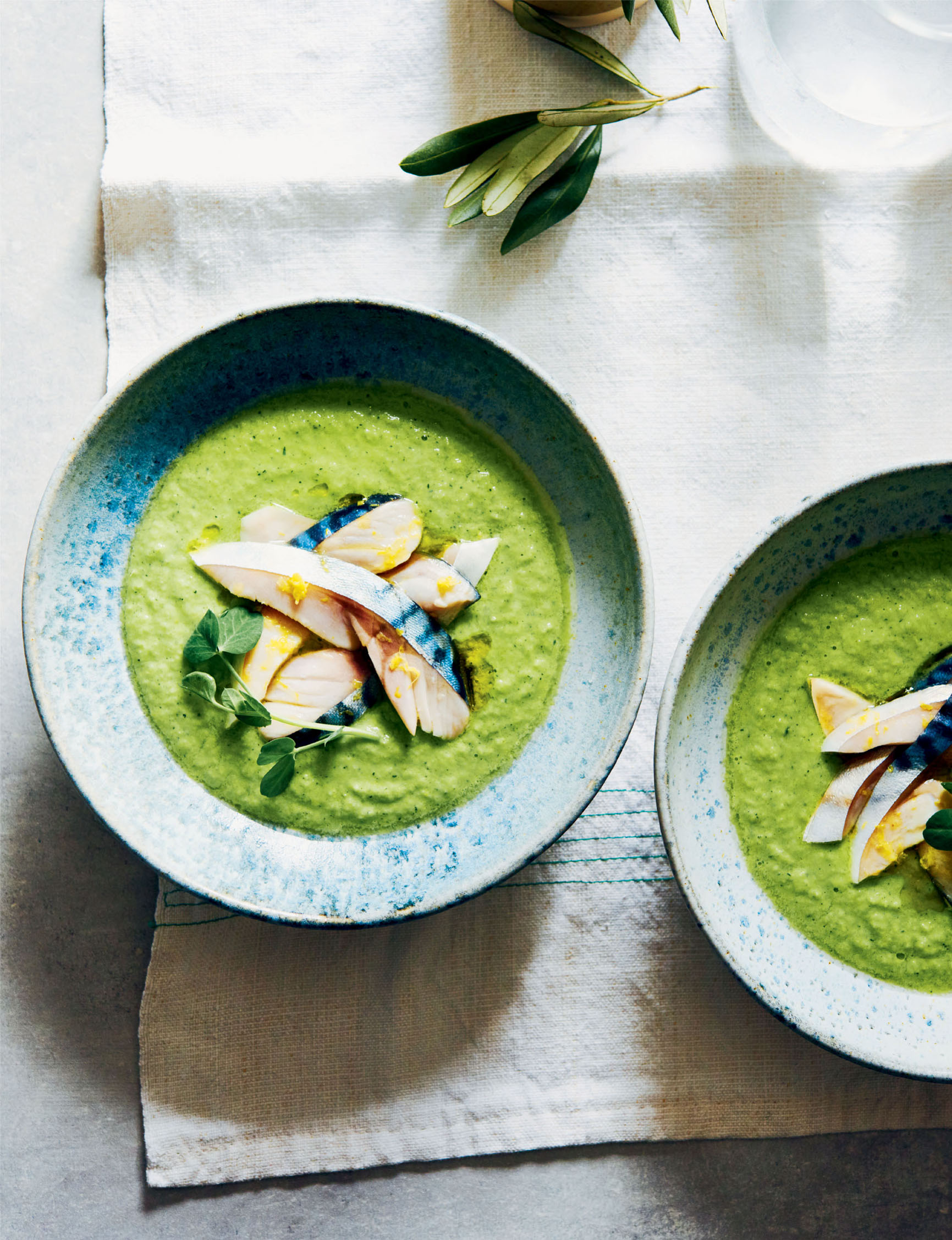 Chilled Summer Garden Soup with Lemon and Mackerel