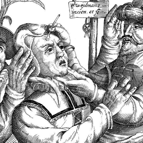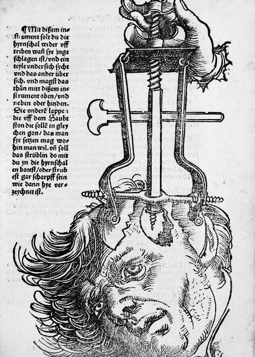 Трепанация черепа. Старинная гравюра. Такие операция проводились с древности для изгнания злых духов, лечения раненых или душевнобольных