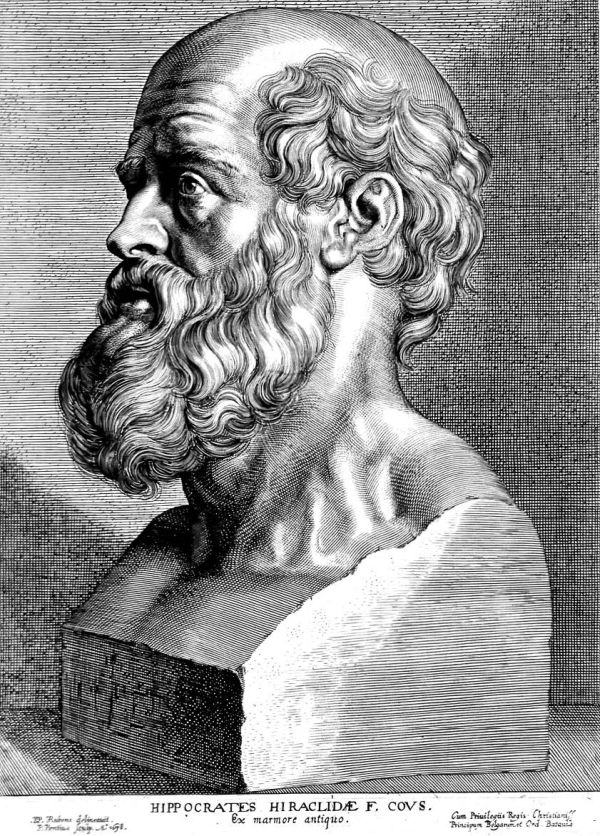 Несмотря на то, что Гиппократ жил в глубокой древности, многие его идеи были положены в основу медицины и сыграли ключевую роль в Средневековье. Поэтому рассказывать о средневековой медицине невозможно, оставив в стороне Гиппократа. Этот самый знаменитый врач древней Греции справедливо признан отцом медицины. Он жил в V–IV вв. до н. э. и достиг возраста около 90 лет. Можно предположить, что Гиппократ не только учил других правильному образу жизни, но и сам следовал своим правилам. Ему принадлежит множество афоризмов, сохранивших свою актуальность до сих пор. Например: «Любое излишество противно природе»; «Проклятия и благословения оказывают на человека реальное воздействие»; «Жизнь коротка, наука и искусства вечны, случаи скоротечны, опыт обманчив, верное суждение трудно».