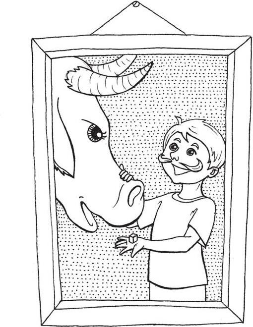 Taču zēna prāts nesās uz āzēšanos. Viņš pielavījās no aizmugures un iekliedzās: – Uf!
