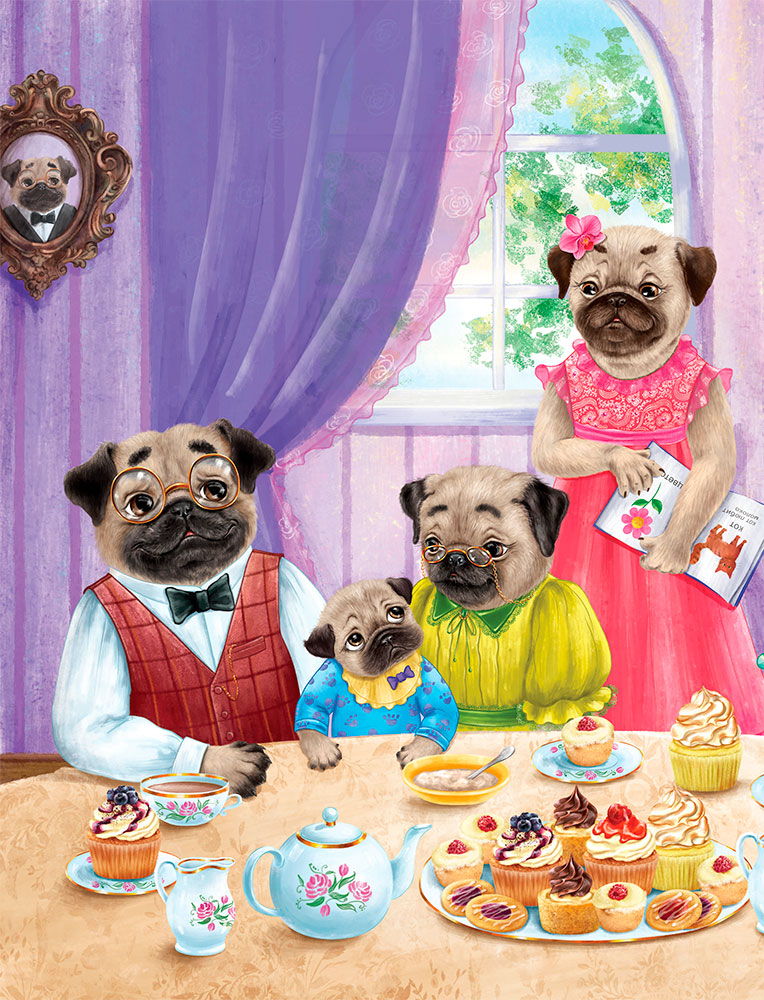 Самый умный мопс сделал глоток какао из своей большой чашки.