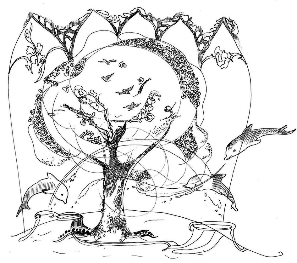 Доктор ушёл, а девочка, в сопровождении неотступно следовавших за нею собак, побрела знакомым коридором вглубь дома. Вот и веранда с чудесным фонтаном в виде застывших в полёте играющих дельфинчиков. А рядом дерево, которым она так восхищалась в своё первое посещение. Оно было такое красивое, что показалось ей тогда искусно сделанной декорацией. Но, на самом деле, дерево было самое настоящее, хотя и росло в помещении. Оно было сплошь покрыто прекрасными розовыми цветами с яркими сиреневыми пестиками.